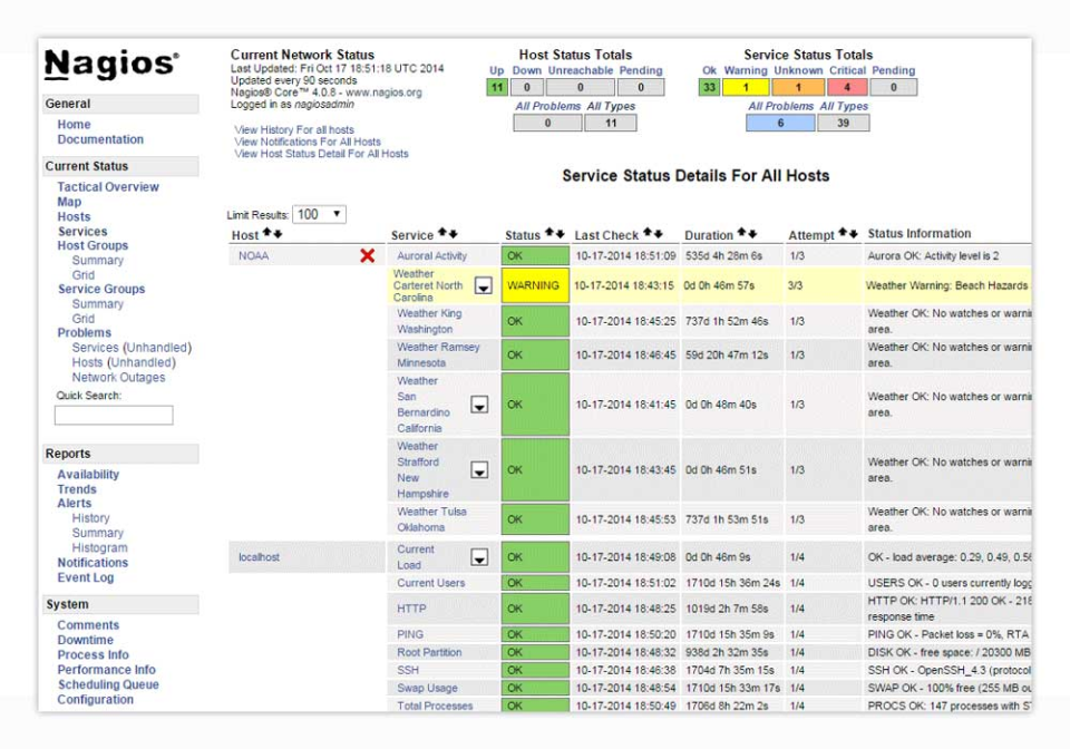 Nagios est connu pour l’un des meilleurs logiciels de surveillance de serveur sur le marché. La surveillance des serveurs est simplifiée dans Nagios grâce à la flexibilité de surveiller vos serveurs avec une surveillance à la fois avec agent et sans agent. Avec plus de 5000 addons différents disponibles pour surveiller vos serveurs, la communauté de Nagios Exchange n'a rien négligé.